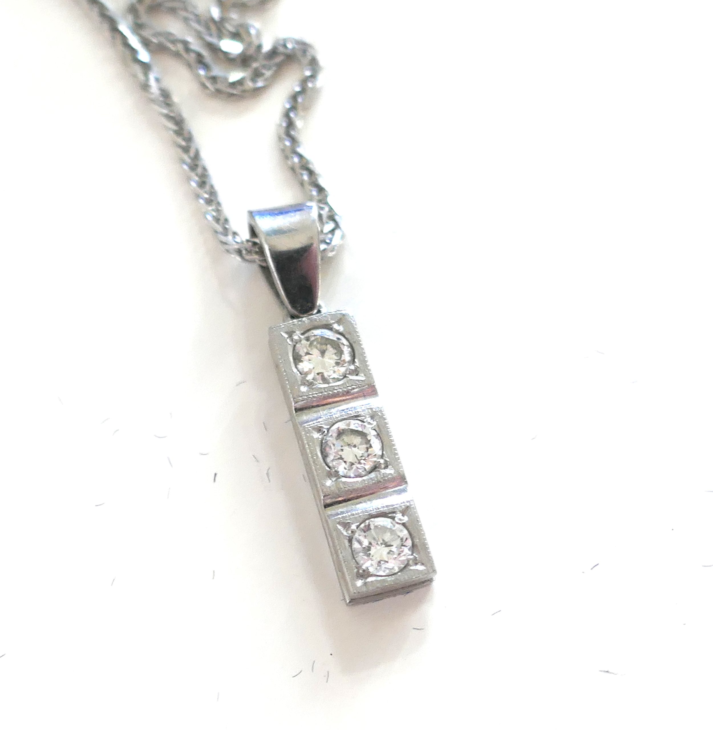 18ct White Gold 3 stone Diamond pendant and chain