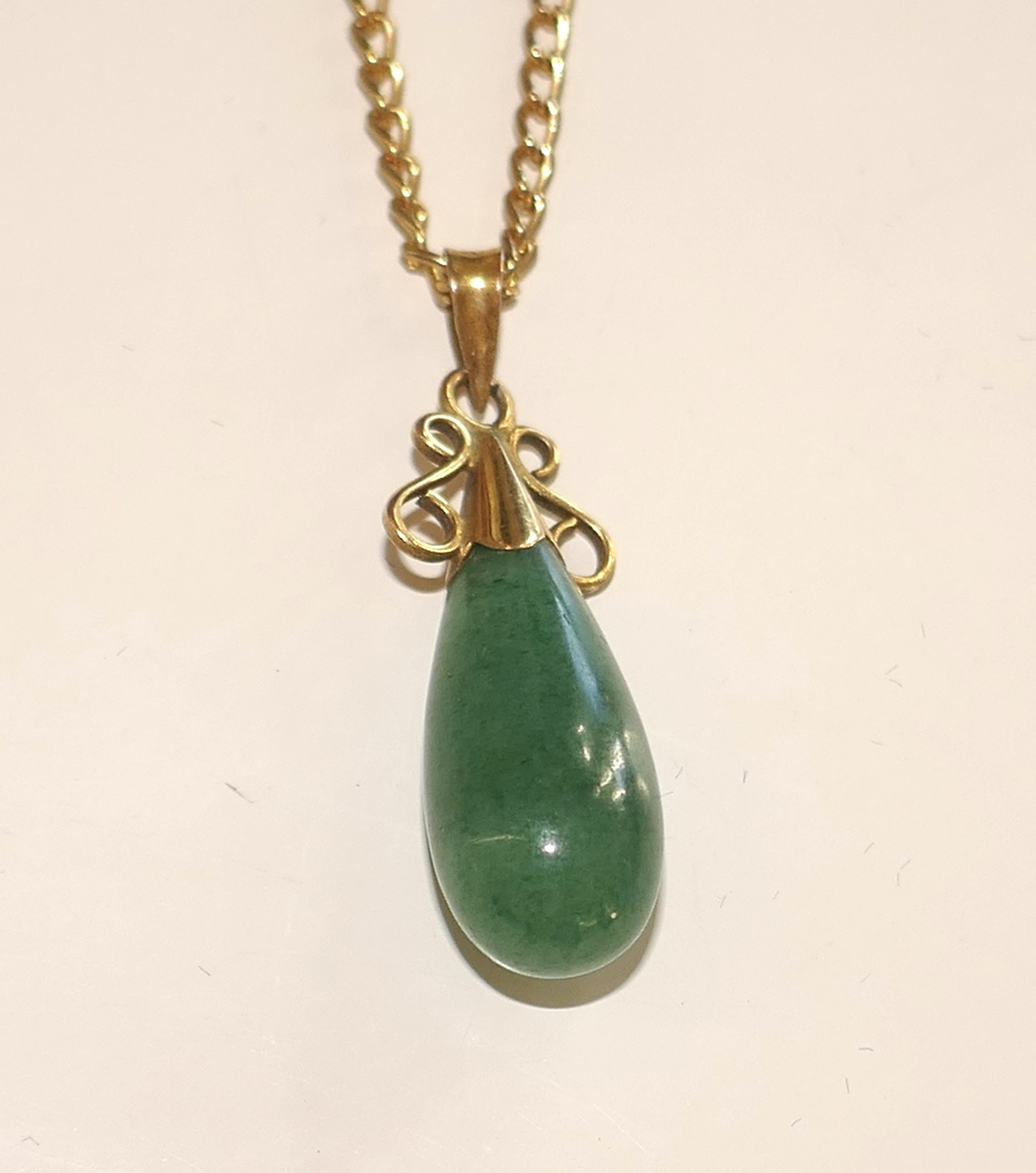 A beautiful coloured JADE set in 14ct Gold. The pendant length including the bale measures 3cm.