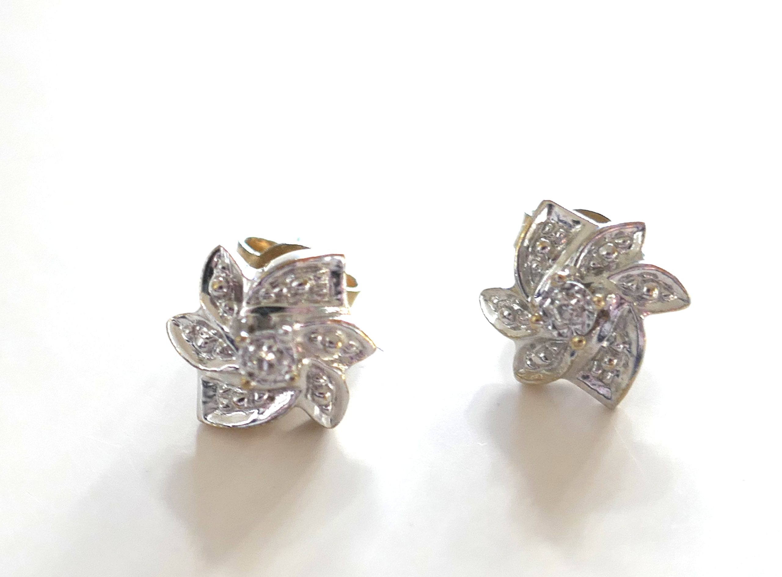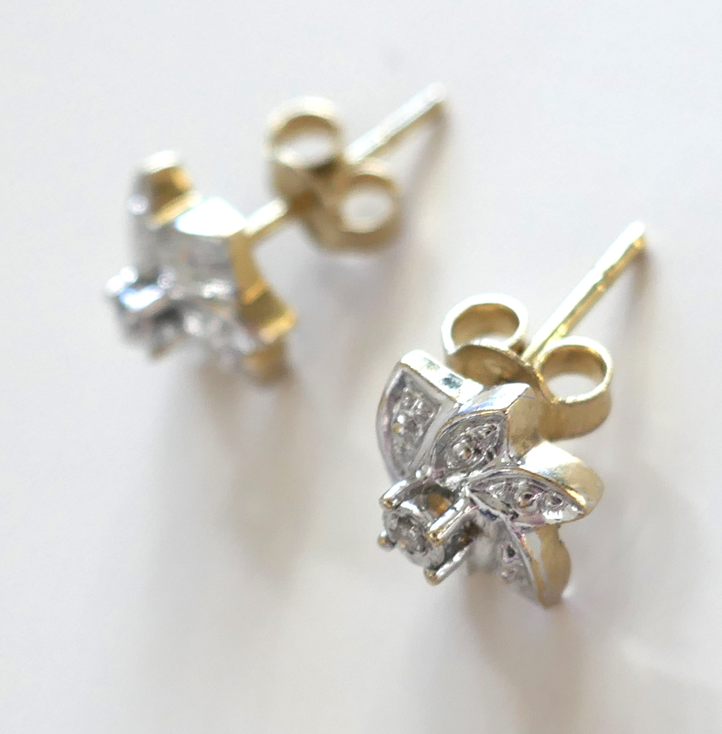 9ct Gold Yellow and White Gold Diamond cluster earrings