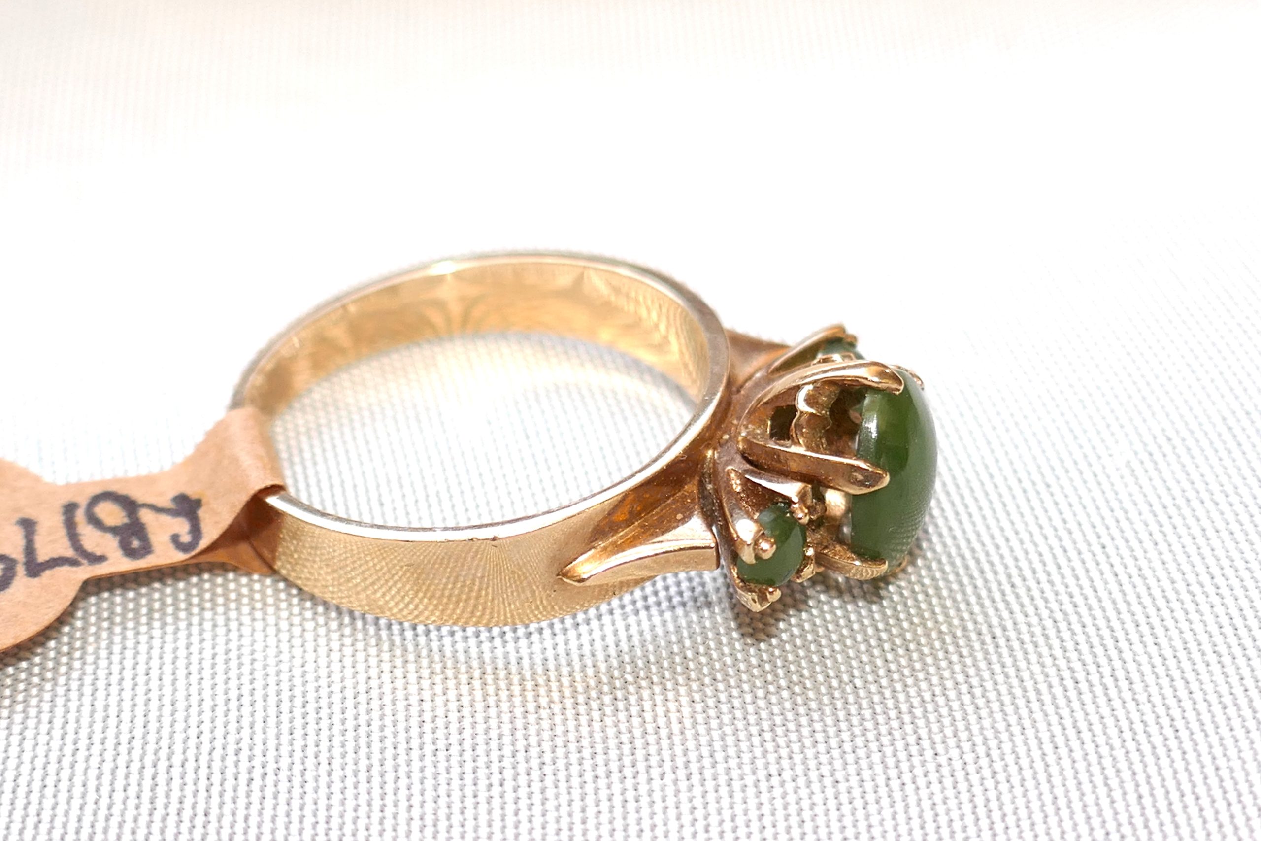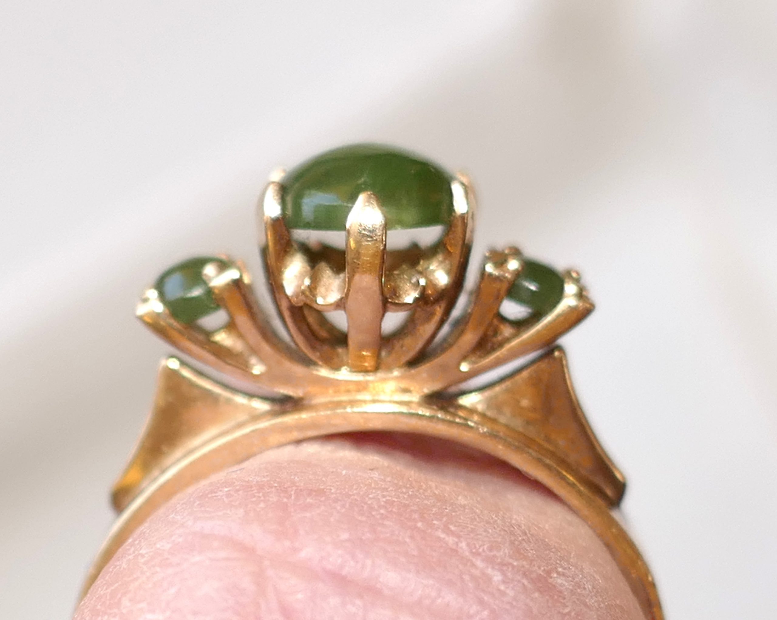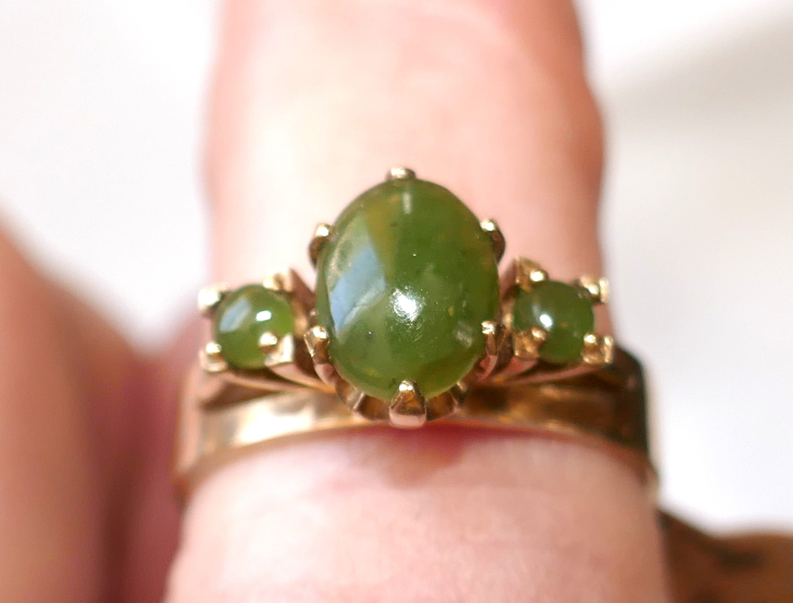 This wonderful Vintage NZ Pounamu ( Greenstone ) ring has 3 stones and set in 9ct gold